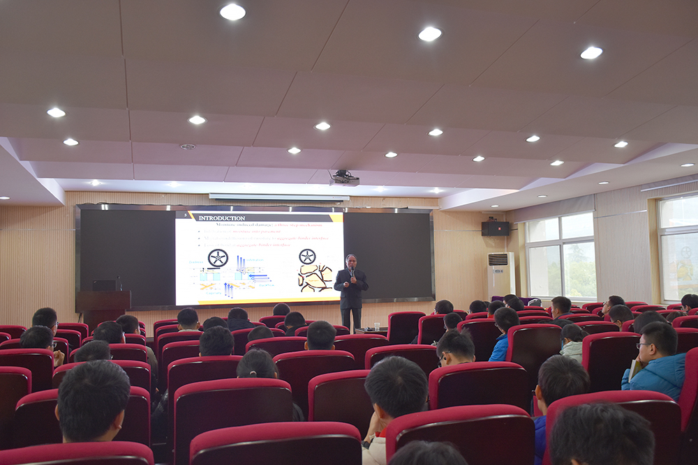 12月18日下午,应江南在线注册院长焦玉勇教授邀请,美国奥克拉荷马大学土木工程系教授Musharraf Zaman来校作了题为Mechanistic Characterization of Rock-Binder Interface for Evaluation for Moisture-Induced Damage的报告。焦玉勇教授主持了报告会,学院100余名师生聆听了报告。