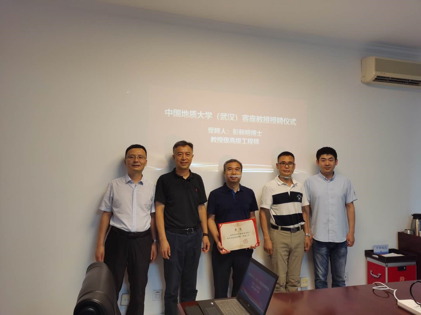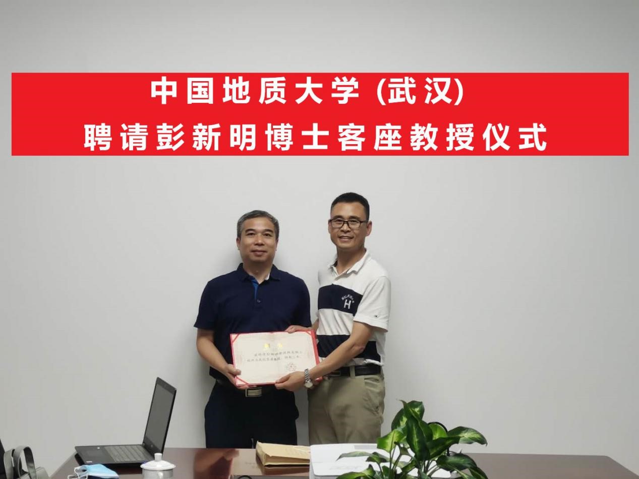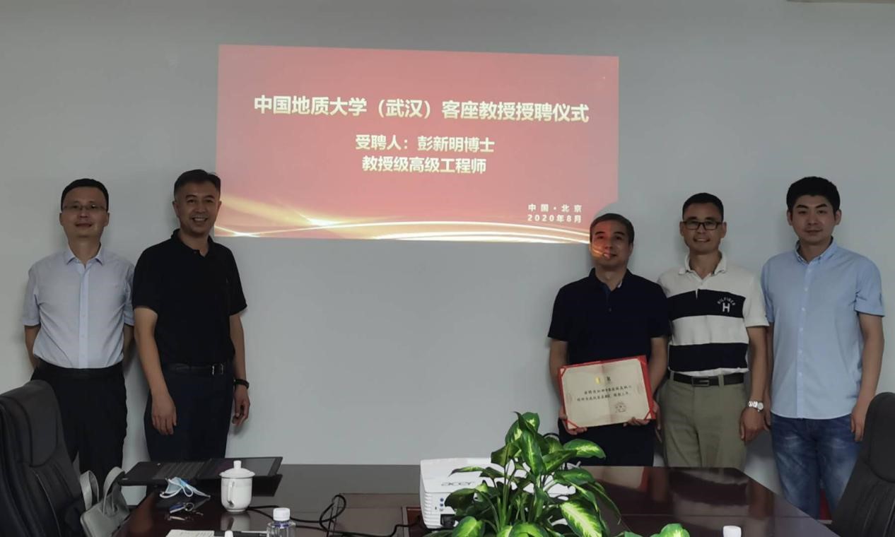 8月12日下午,中国地质大学(武汉)聘请彭新明博士为客座教授的仪式在北京市地质勘察技术院217会议室举行。北京市地质勘察技术院行政负责人王立发、院副总工程师兼资源勘查中心主任彭新明及相关人员出席仪式。仪式由江南在线注册副院长窦斌教授主持。