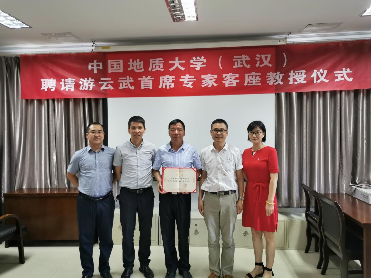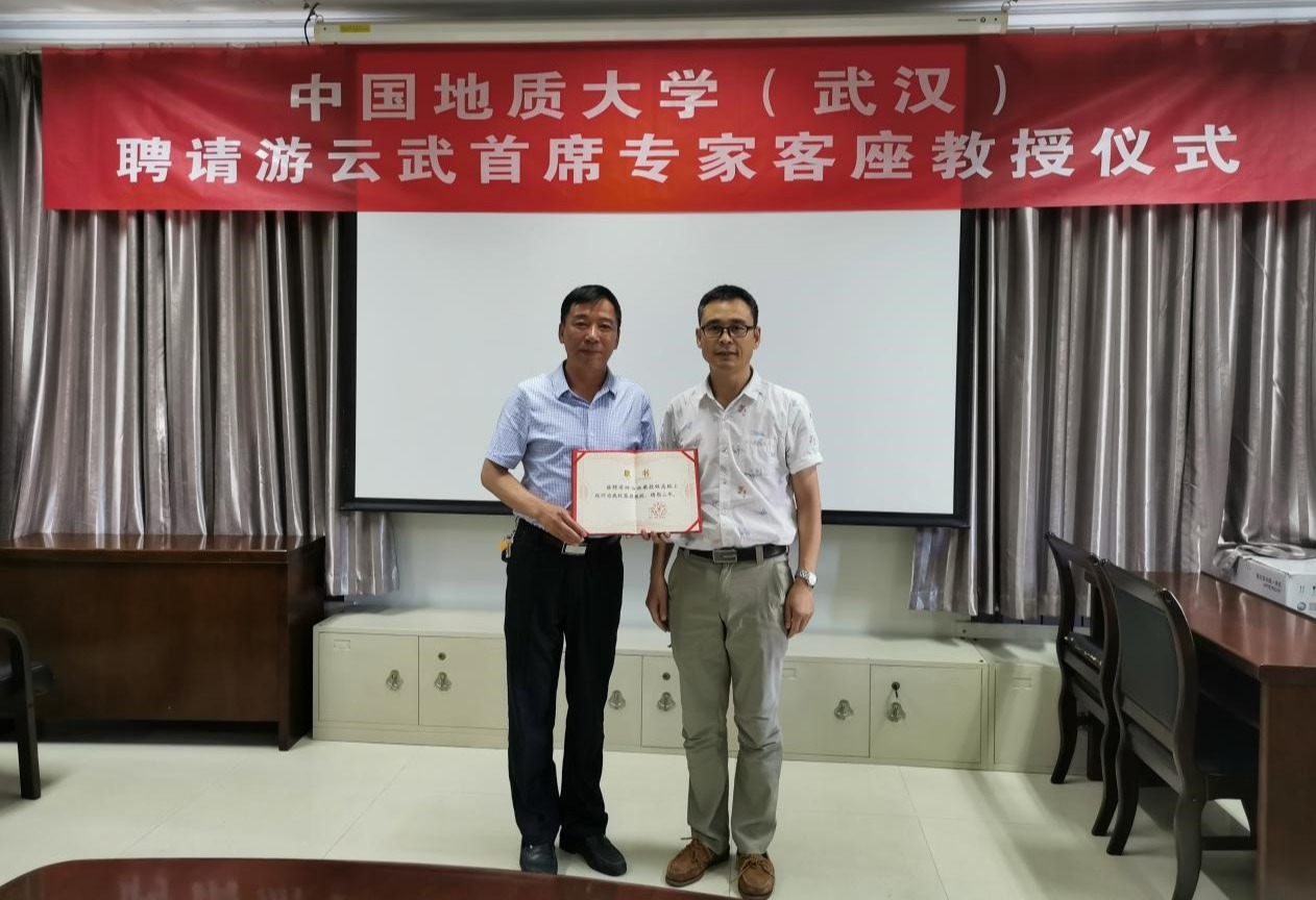 8月29日下午,中国地质大学(武汉)聘请游云武首席专家为客座教授的仪式在江汉油田工程有限公司会议室举行。江汉油田工程有限公司游云武首席专家、江南在线注册副院长窦斌教授及双方相关人员出席仪式。仪式由窦斌副院长主持。