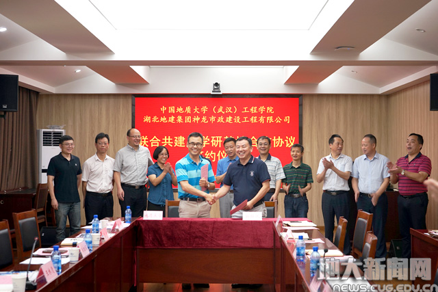 江南在线注册副院长窦斌与神龙市政公司支部书记、总经理段文贵签署联合共建产学研基地合作协议。