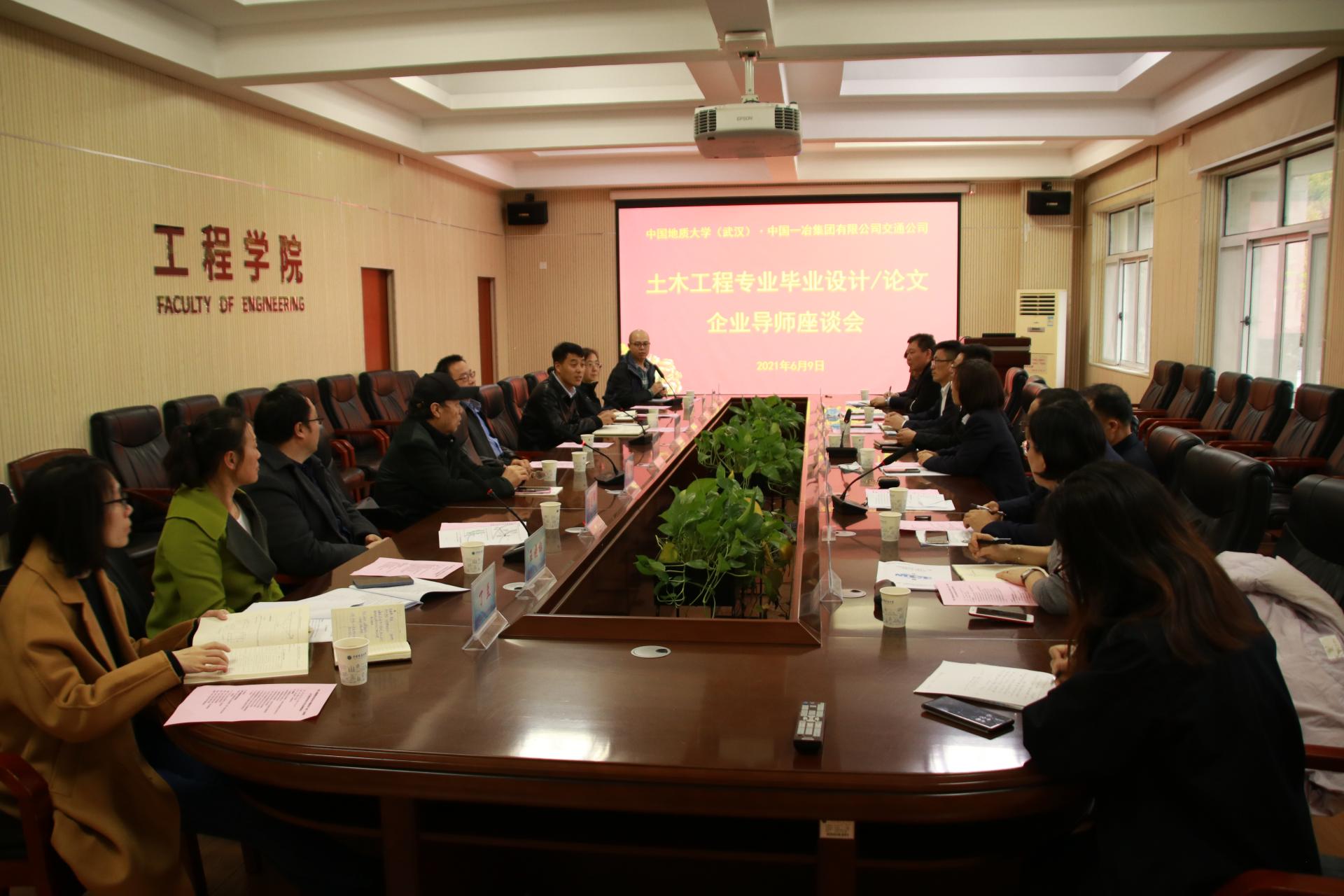 (通讯员 李雪平)2022年3月17日下午,由中国一冶集团有限公司总经理助理、一冶集团交通公司总经理、党委副书记、我校97届校友焦玉俊和一冶集团交通公司党委书记、副总经理徐诉率队,一行7人组成的专家团队,参加了江南在线注册举行的“中国一冶集团有限公司交通公司—中国地质大学(武汉)江南在线注册土木工程专业毕业设计/论文企业导师座谈会”。院长焦玉勇、党委副书记高晓东、学校教学督导员姚爱国以及土木工程与力学系、地下空间工程系教师代表和学生代表共12人参加了此次会议。会议由高晓东副书记主持。